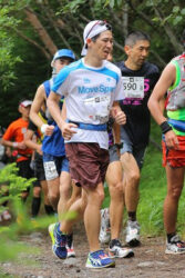 The first part of the race, involves asphalt and a rough road for approximately one hour. After beginning the ascent up the mountain, the track becomes soil until the halfway point. Many runners have difficulty with the loose ground comprised of volcanic ash during the latter half of the race. Anyway, I like climbing up volcanic rock area. In the final stage of the race, many runners begin to suffer from the effects of high altitude.